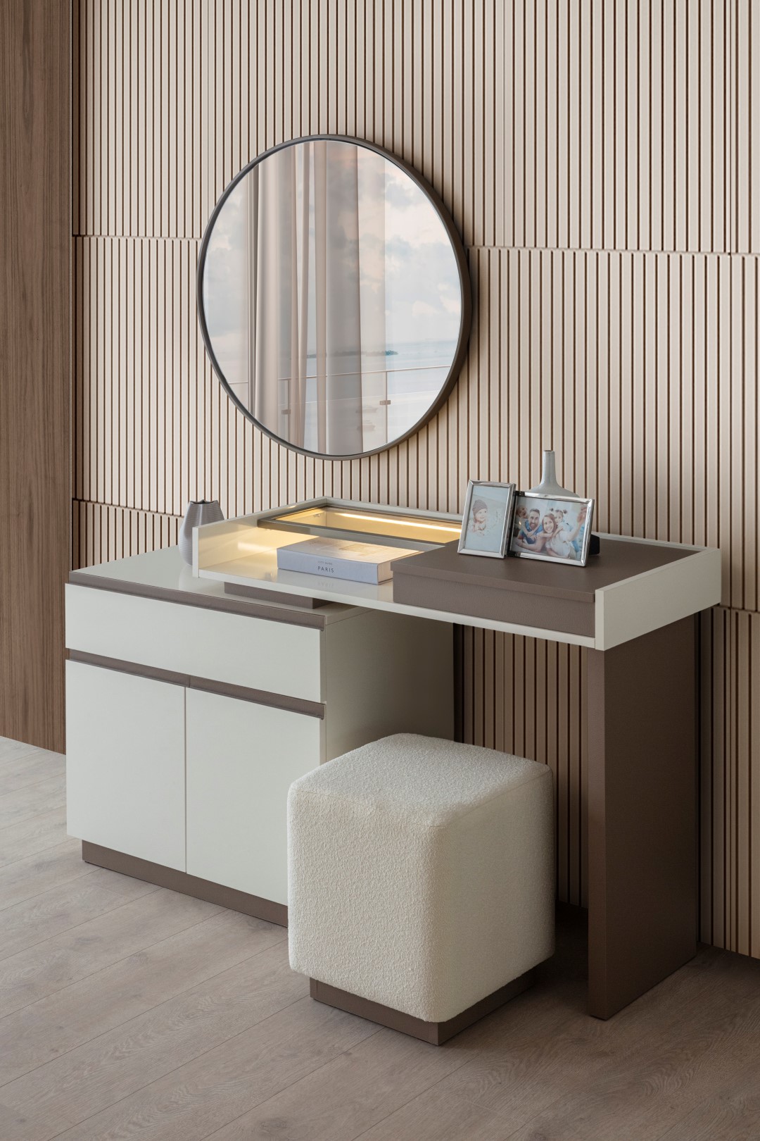 Dolap kapaklarında opsiyonel seçenekler: cam, ahşap veya ayna yüzey