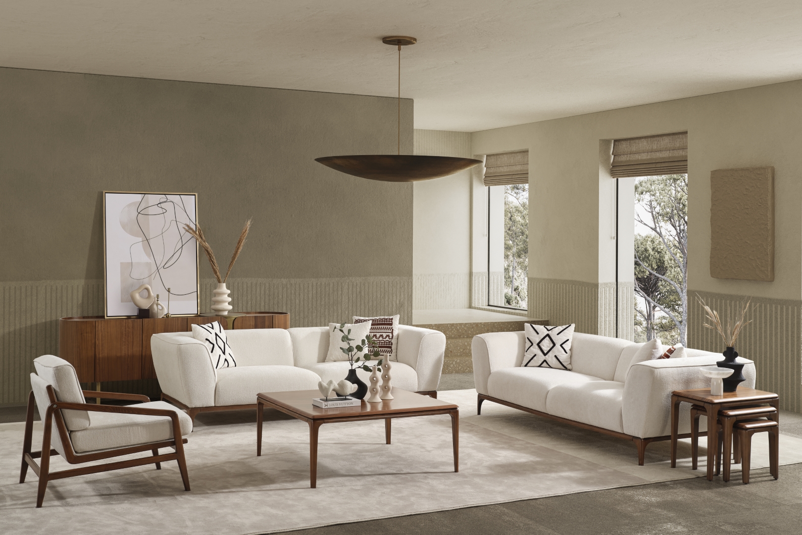 2ad. üçlü koltuk ve 1ad. berjerden oluşmaktadır. Dörtlü koltuk ve 3lü Ahşap sehpalı koltuk opsiyonel satılmaktadır.