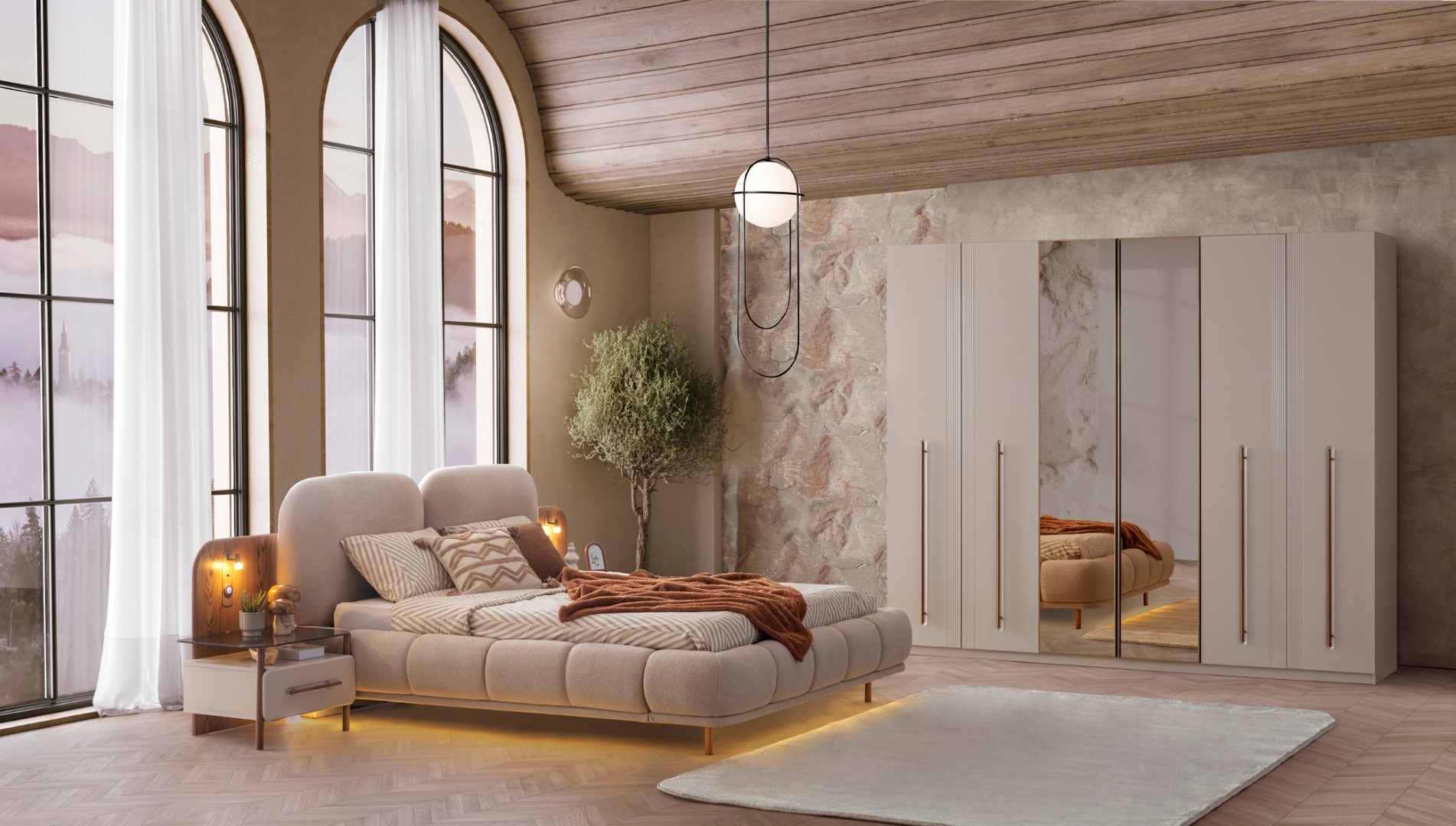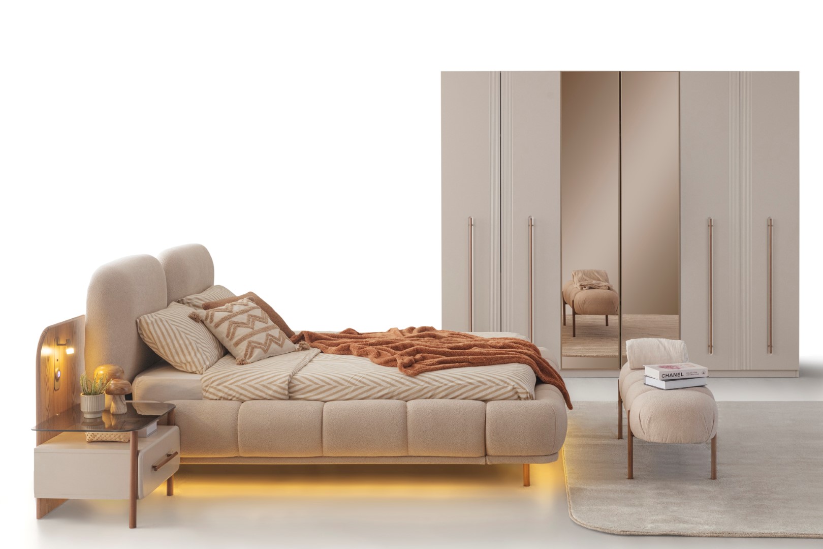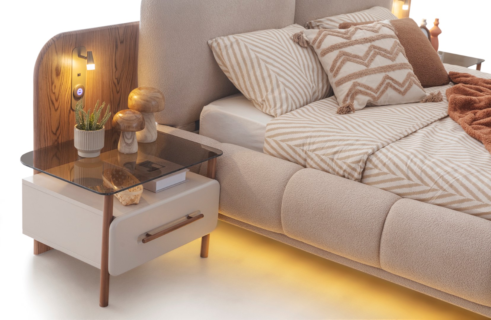 Komodin panolarında aplik yerleşimine uygun tasarım