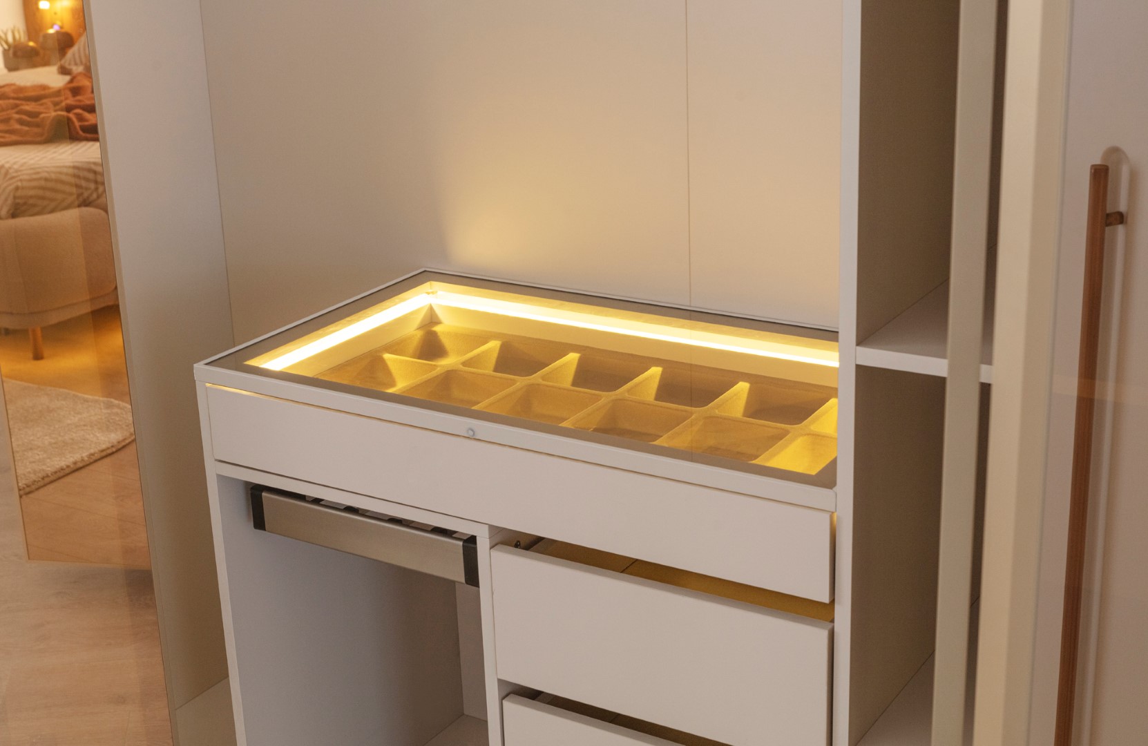 Yerden yüksek şifonyer ve özel tasarım led ayna