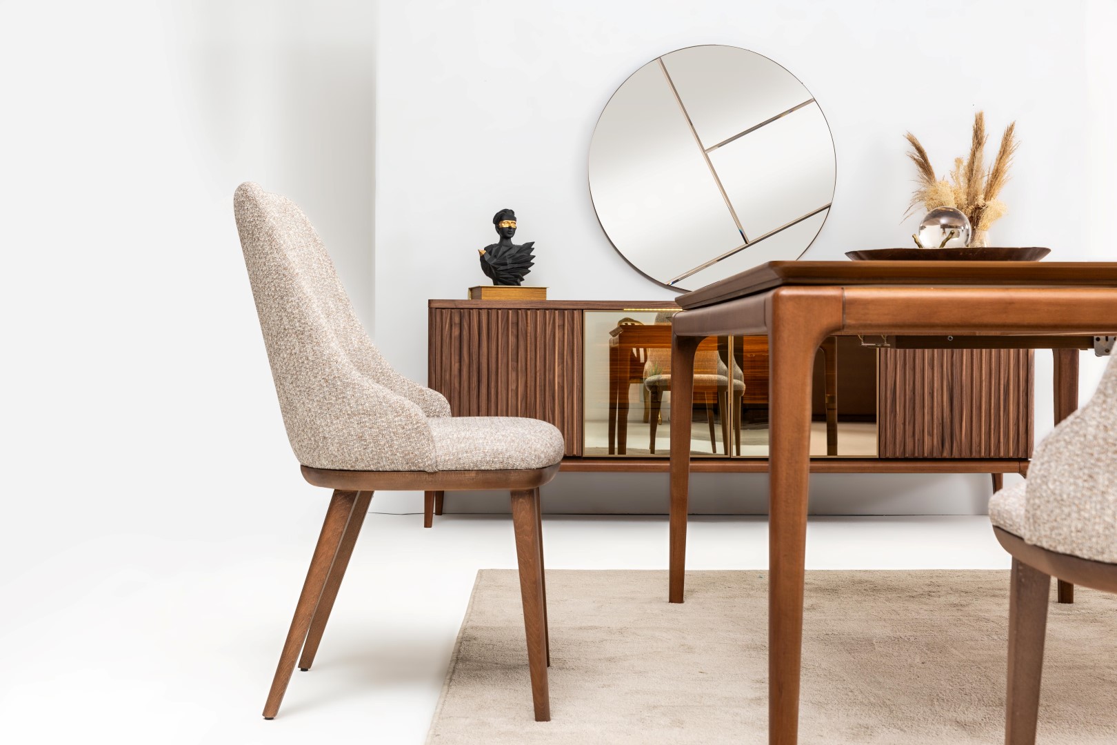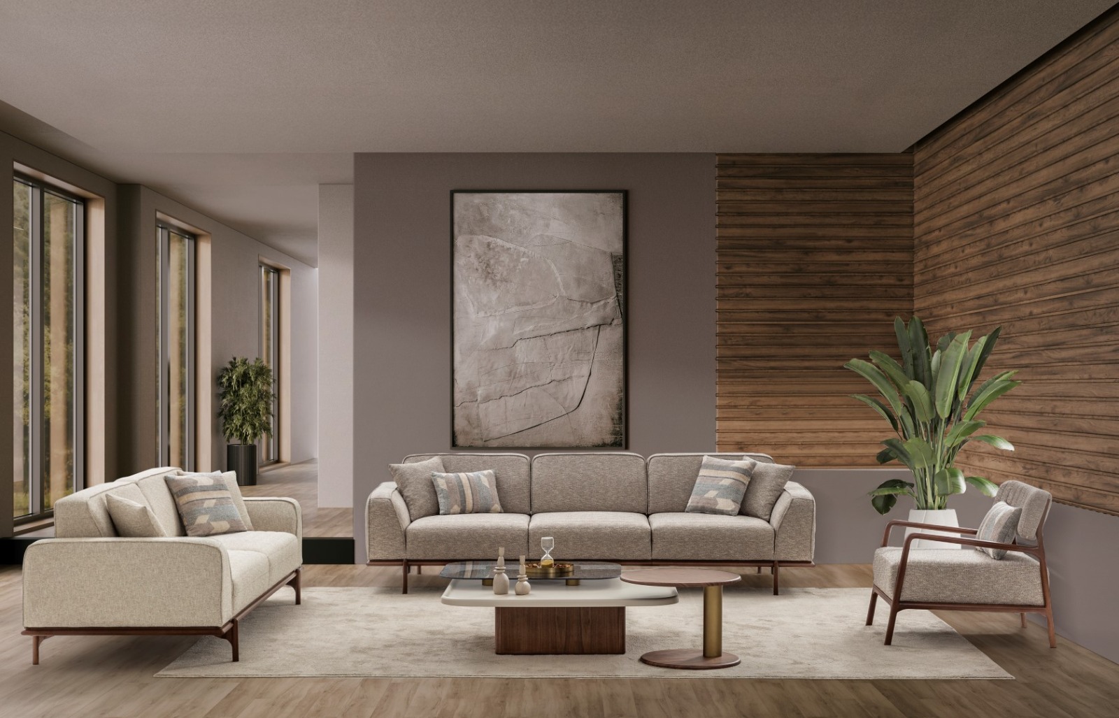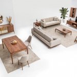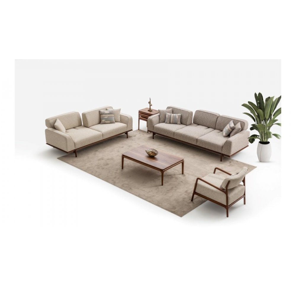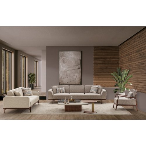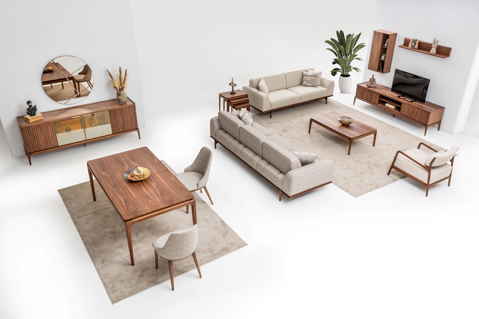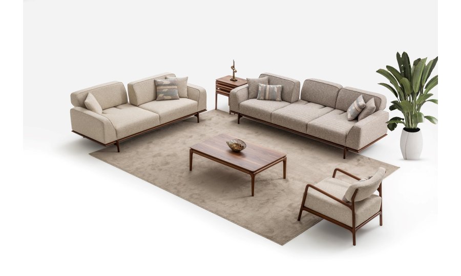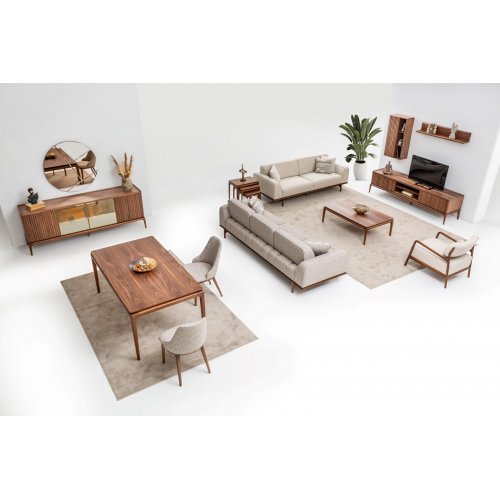 Koltuk Takımı(4+3+1), Yatak Odası (1ad. 6 Kapaklı Dolap, 1ad. 160*200 bazalı karyola, 2ad. komodin, 1ad. şifonyer) ve Yemek Odası (1 ad. konsol, 1 ad. konsol aynası, 1 ad. açılır masa, 6 ad. sandalye) 'ndan oluşmaktadır. İlave berjer, tv ünitesi, ikili orta sehpa ve pufu opsiyonel olarak satışa sunulmaktadır.