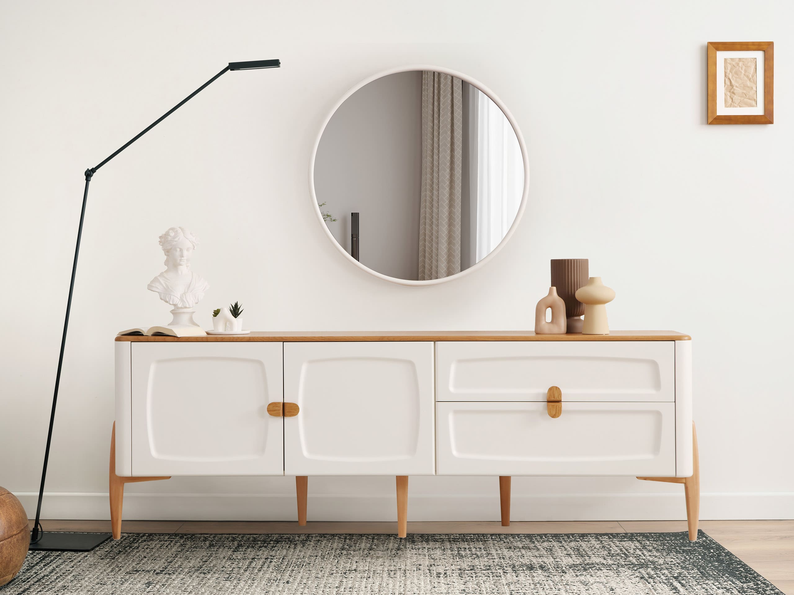 Masif görünümlü ağaç ayaklara sahip masa ve konsol tasarımı