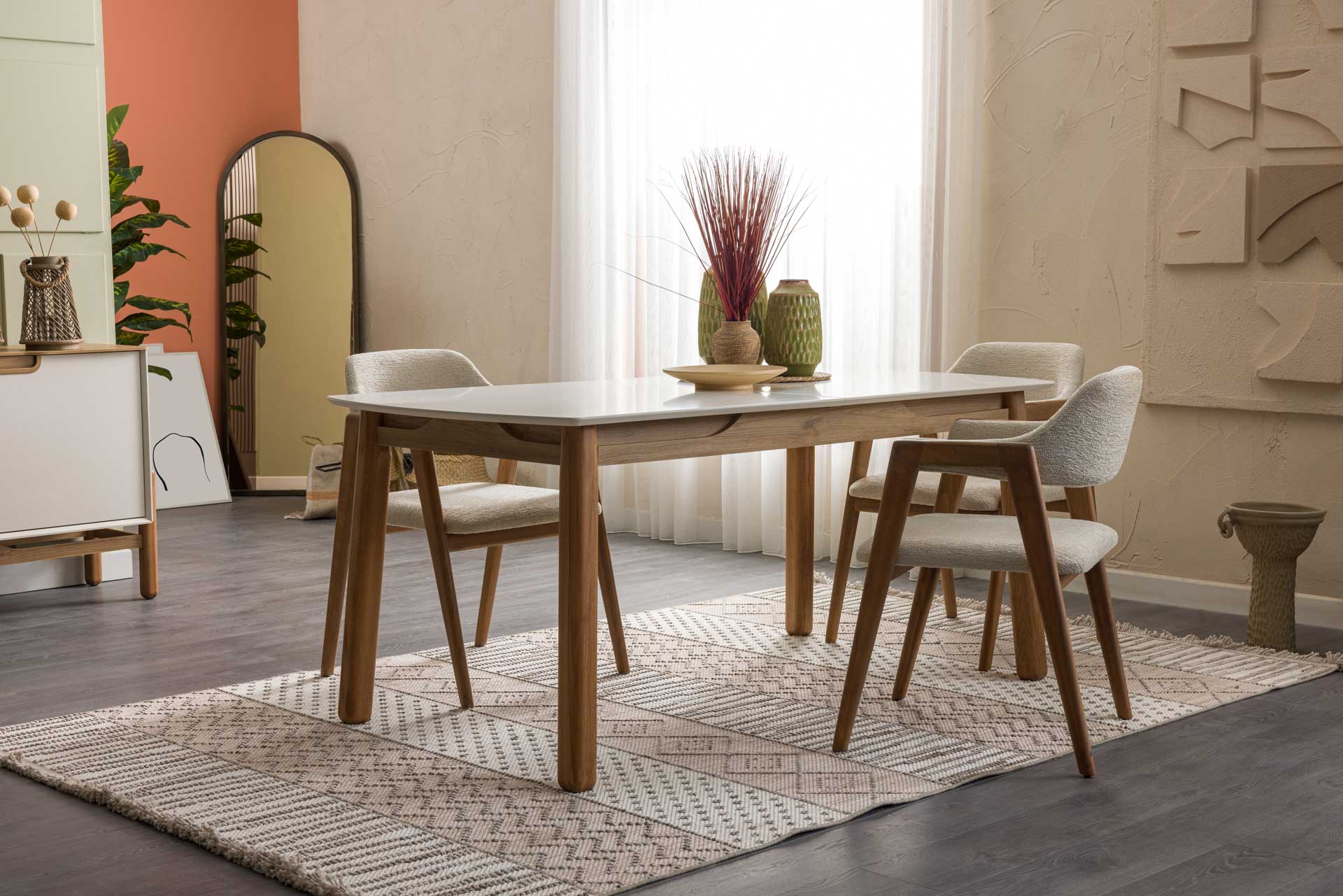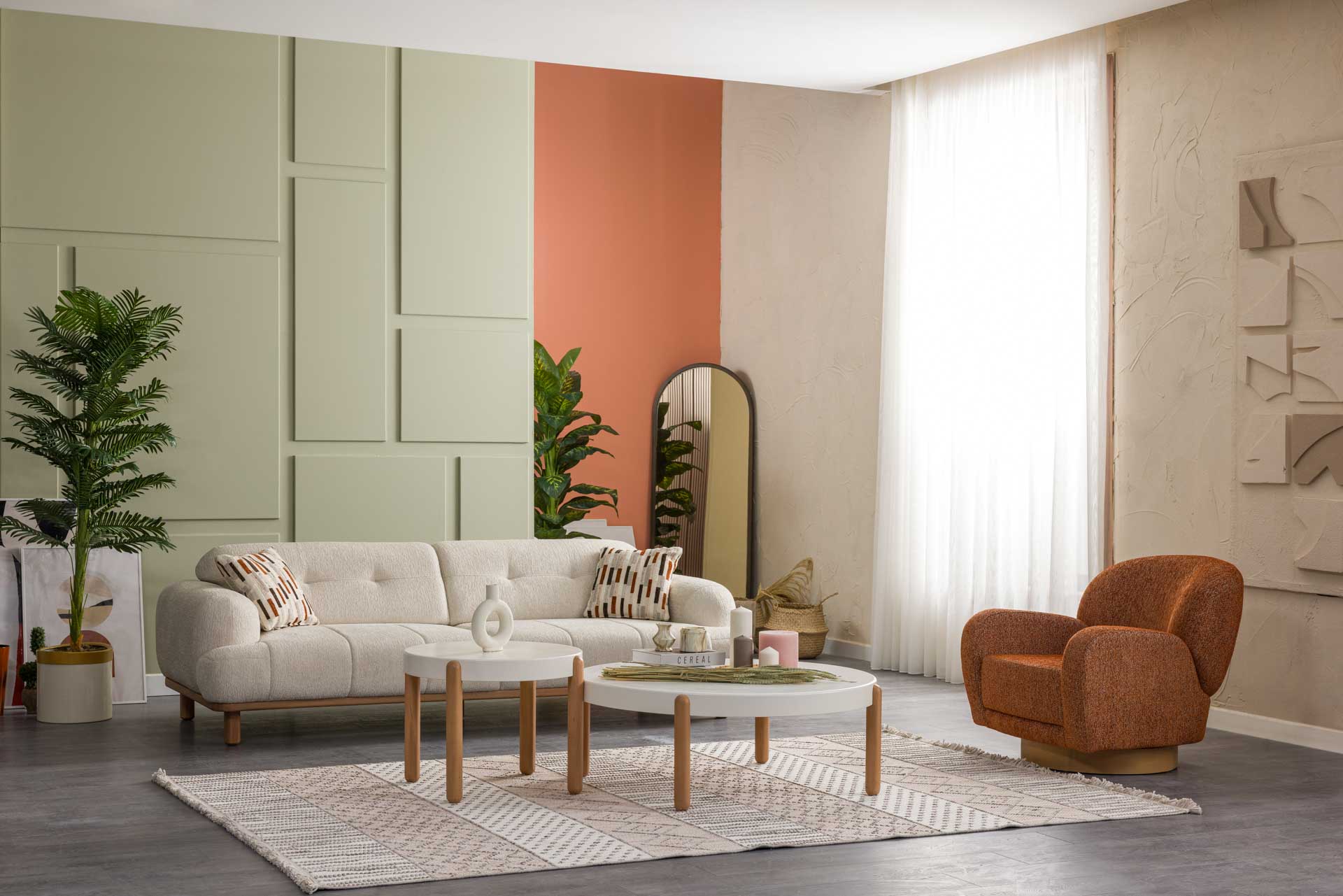 Takım İçeriği Koltuk Takımı(3+3+1), Yatak Odası (1ad. 6 Kapaklı Dolap, 1ad. 160*200 bazasız karyola, 2ad. komodin, 1ad. aynalı şifonyer) ve Yemek Odası (1 ad. konsol, 1 ad. konsol aynası, 1 ad. masa, 6 ad. sandalye) 'ndan oluşmaktadır. Tv ünitesi, orta sehpa, baza sistemi ve ahşap berjer opsiyonel satılmaktadır.