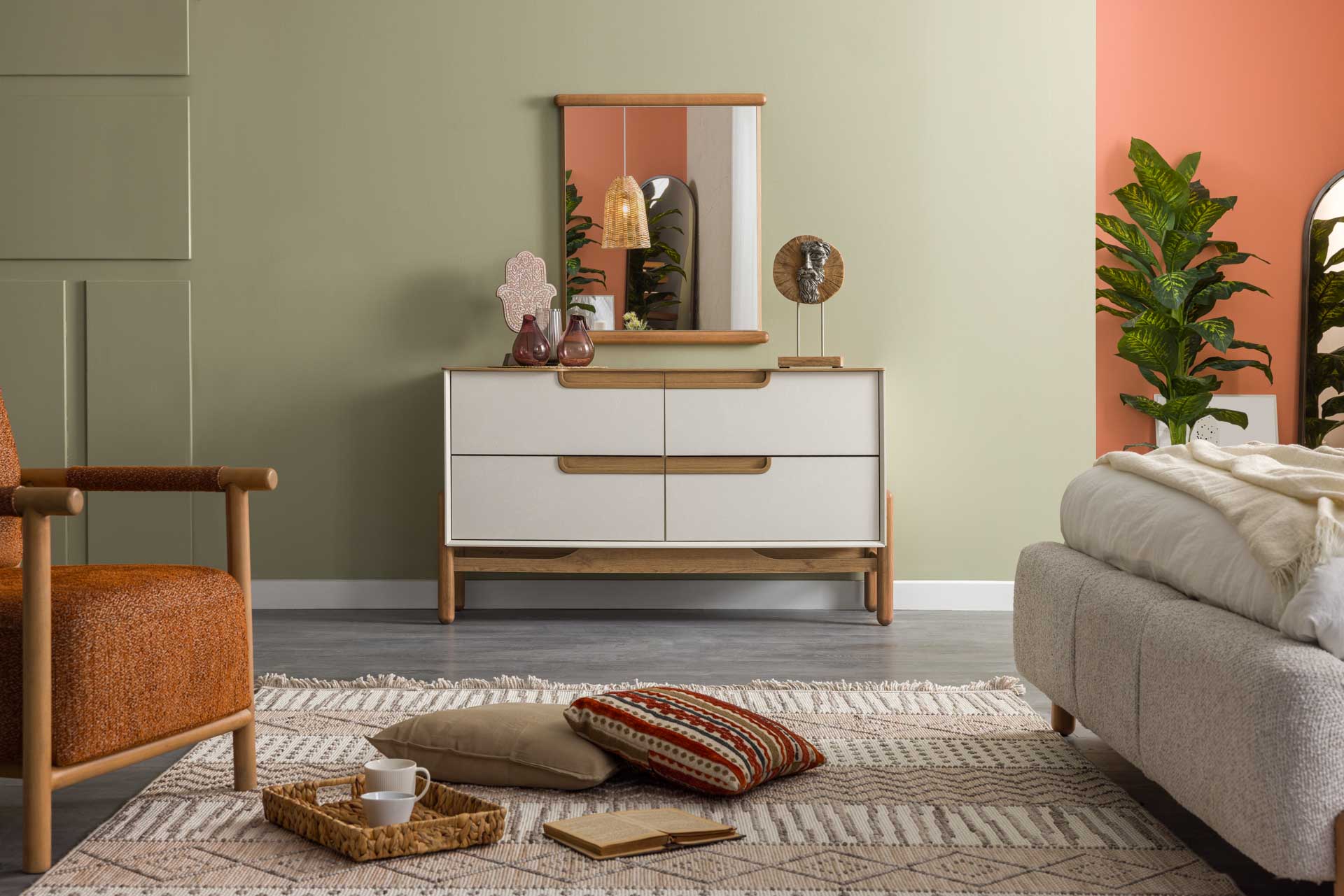 Şifonyer ve komodinde yerden yüksek özel tasarım ayak detayları