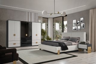Takım içeriği 1 adet başlıklı karyola, 1 adet 4 kapaklı dolap, 1 adet 2 kapaklı dolap, 1 adet şifonyer, 1 adet ayna ve 2 adet tek çekmeceli komodinden oluşmaktadır. Karyola başucu,3 kapaklı dolap, dar 4 çekmeceli çamaşırlık, çift çekmeceli komodin ve dolap içi 2 çekmece modülü opsiyonel olarak satış sunulmuştur.
