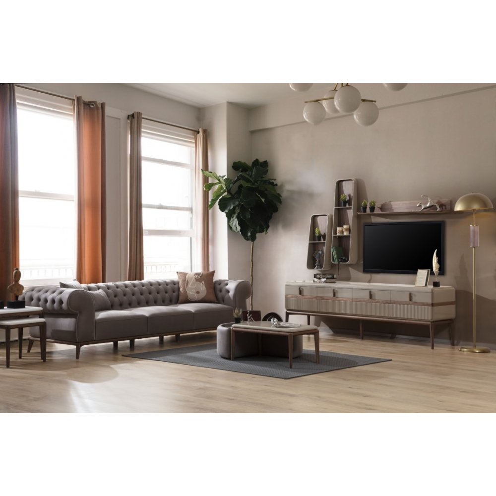 Tokyo Salon Seti; Tokyo Koltuk Takımı (1ad. dörtlü koltuk, 1ad.üçlü koltuk,1ad. berjer), Tokyo Yemek Odası Takımı (Konsol, ayna ,açılır masa , 6 ad.sandalye)ve Tokyo Tv ünitesinden oluşmaktadır. Dikdörtgen sehpa, Yuvarlak sehpa, küçük dikdörtgen ve zigon set opsiyonel olarak satılmaktadır.