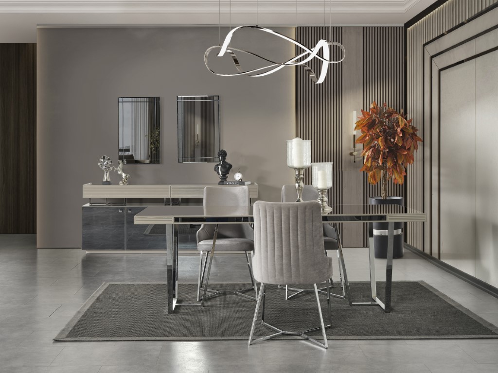 Düğün Paketi; Voyager Yatak Odası Takımı (Dolap,karyola bazasız,2 ad.komodin, şifonyer, ayna), Voyager Yemek Odası Takımı (Konsol, ayna , masa , 6 ad.sandalye), ve Voyager Koltuk Takımından (2ad üçlü kanepe, berjer) oluşmaktadır.