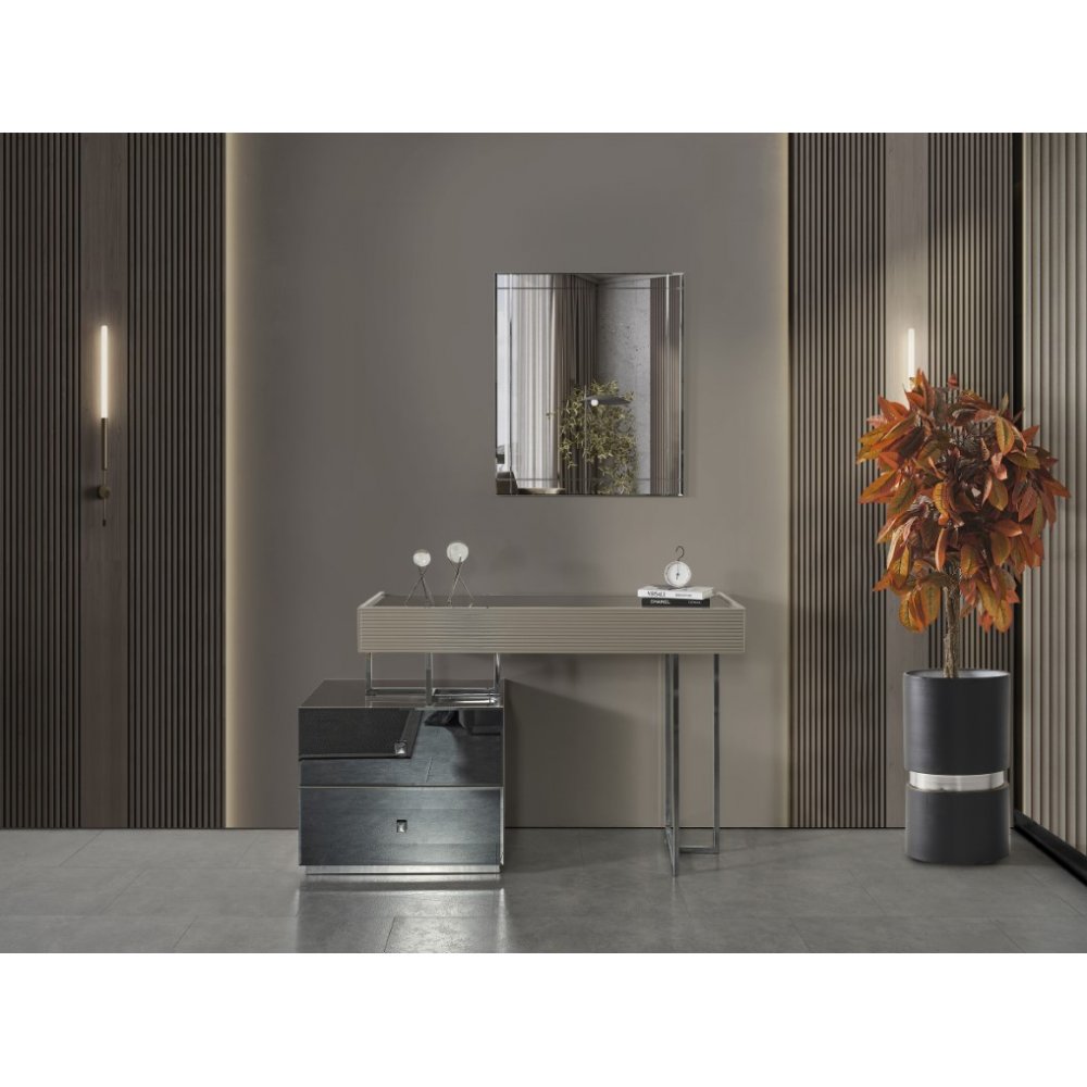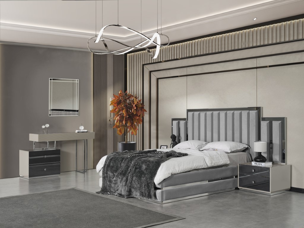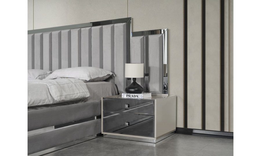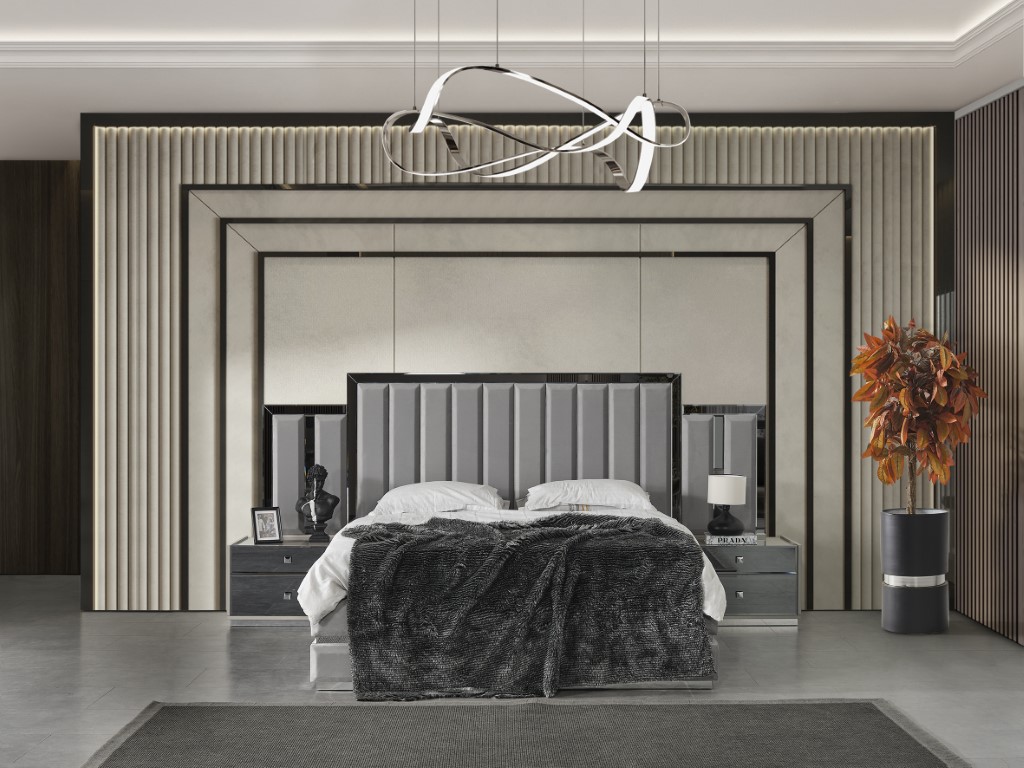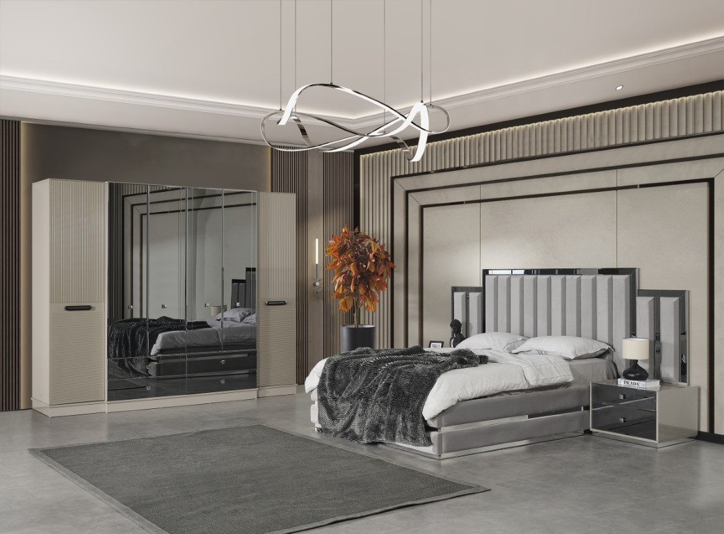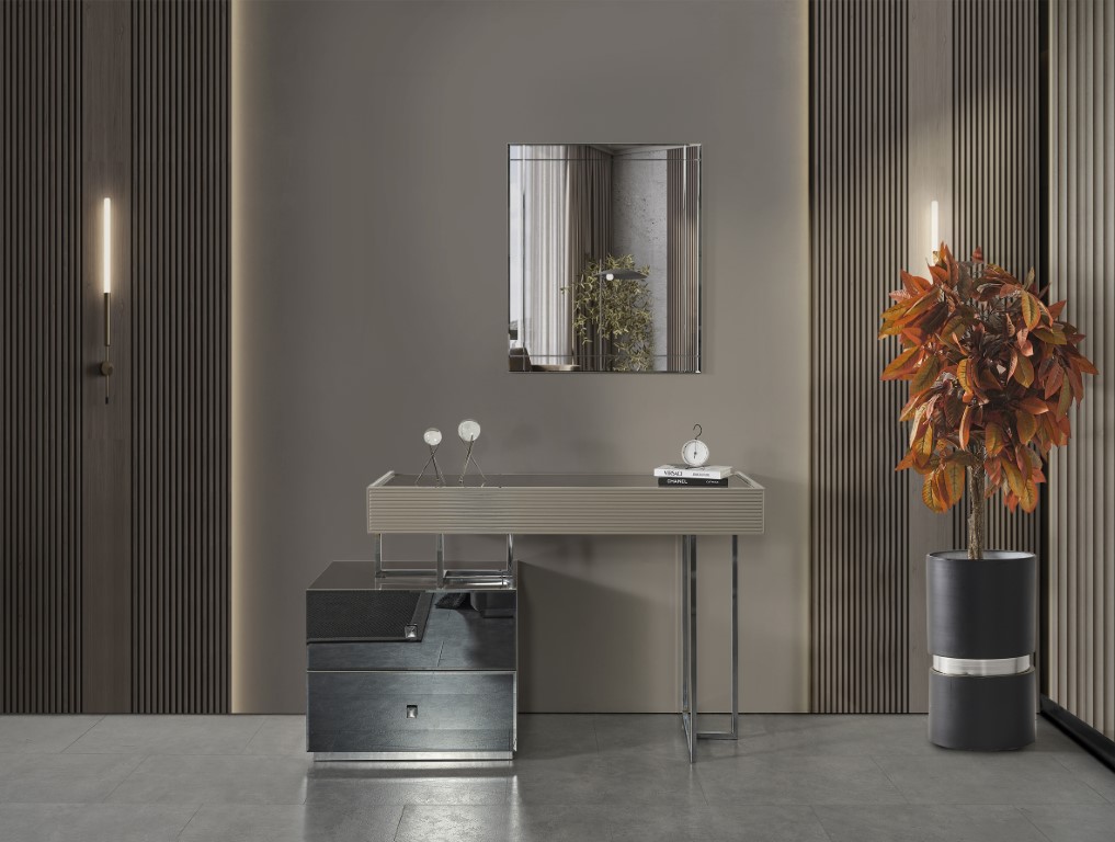 Şık görünümlü, ayna şerit detaylarıyla zenginleştirilmiş başlık